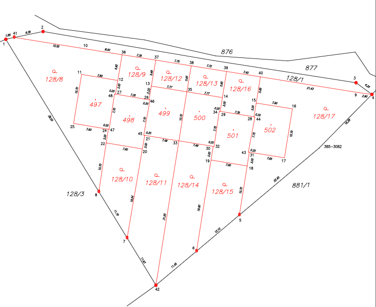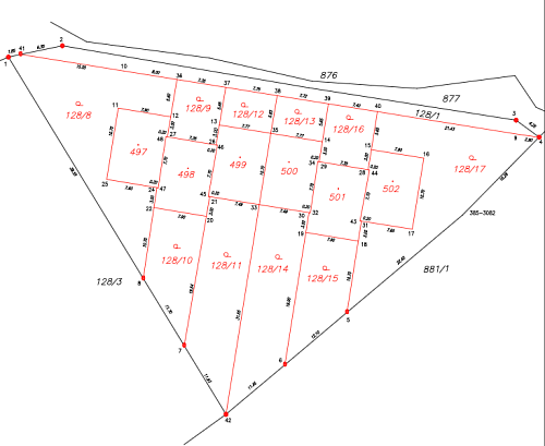 Parcely budou teprve zapsány do katastru dle geometrického plánu - viz foto.
