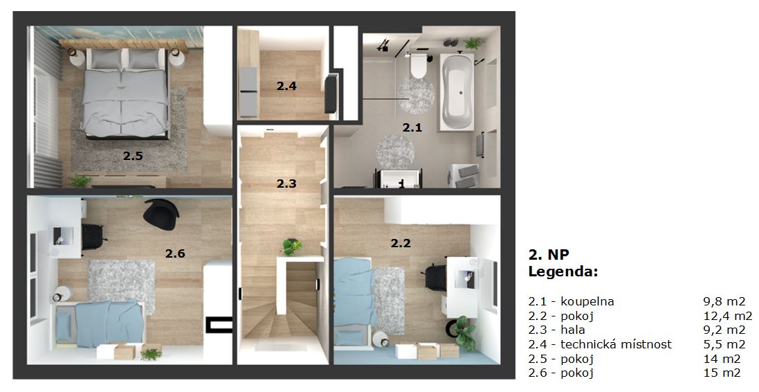 V základním standardu je příprava na klimatizaci (rozvody a prostupy konstrukcemi). Samotná klimatizace není součástí dodávky.