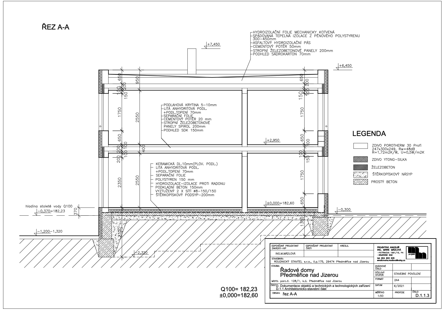 Na základové desce s hydroizolací je položena tepelná izolace se systémovým podlahovým vytápěním. Roznášecí vrstva je provedena strojně hlazeným betonem o tl. 50-60 mm.