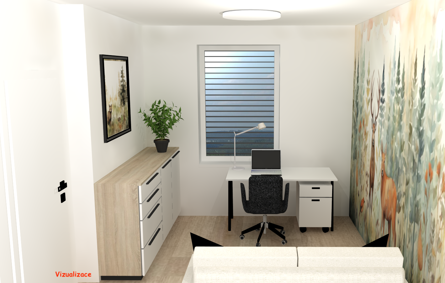 Standardem je bílá disperzní interiérová malba ve všech obytných místnostech, chodbách a zázemí.
