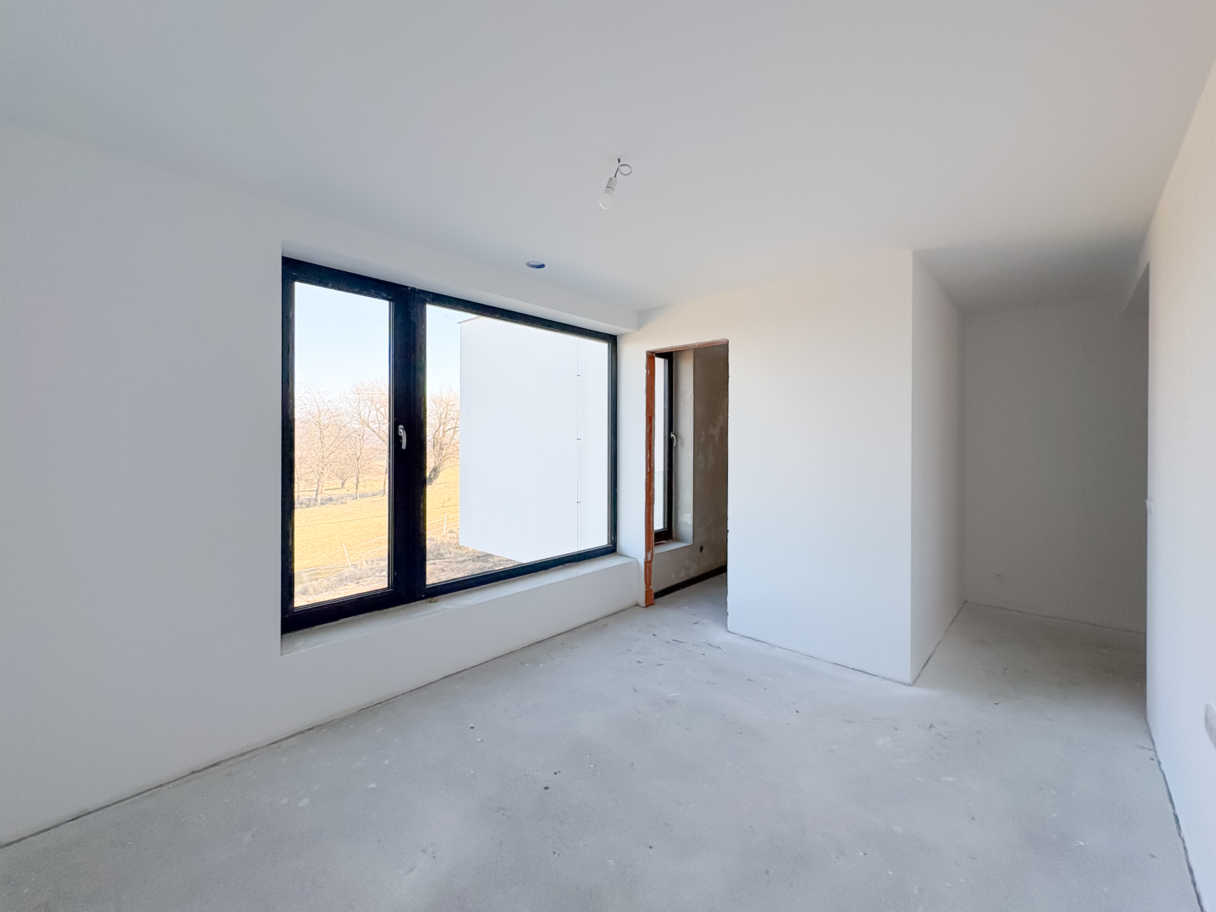 The living room provides direct access to the terrace (facing east), offering stunning views of the surrounding nature and countryside.
