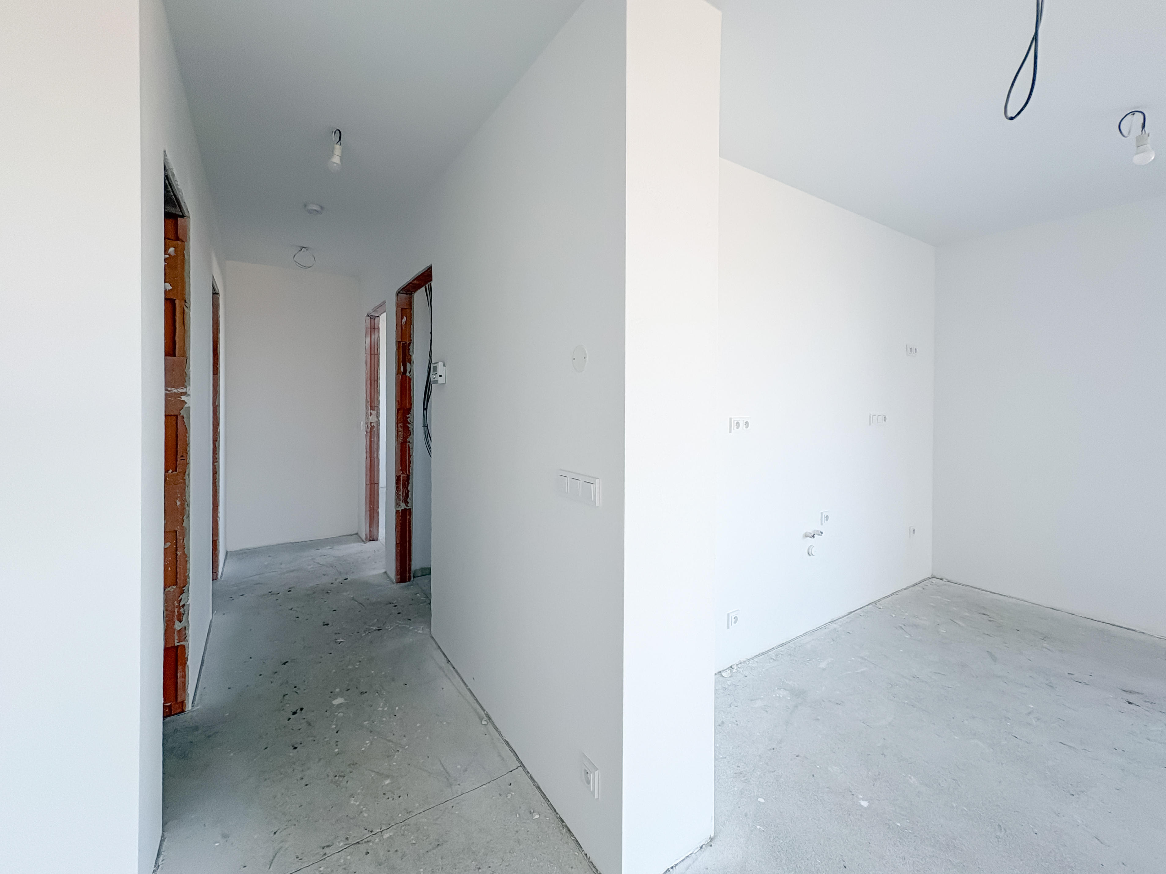 Jednotka se prodává bez kuchyňské linky, nábytku a osvětlení, ale včetně dokončených koupelen, podlah, interiérových dveří, přípravy na kuchyň, přípravy pro FVE, terasy, oplocení, parkovací plochy a hrubých terénních úprav.