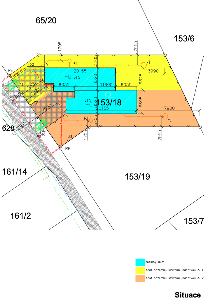 Součástí prodeje je ½ podíl na společných částech nemovitosti a právo výlučného užívání pozemku o výměře 473 m², na kterém se nachází zahrada, krytá terasa a parkovací plocha pro 2 automobily.