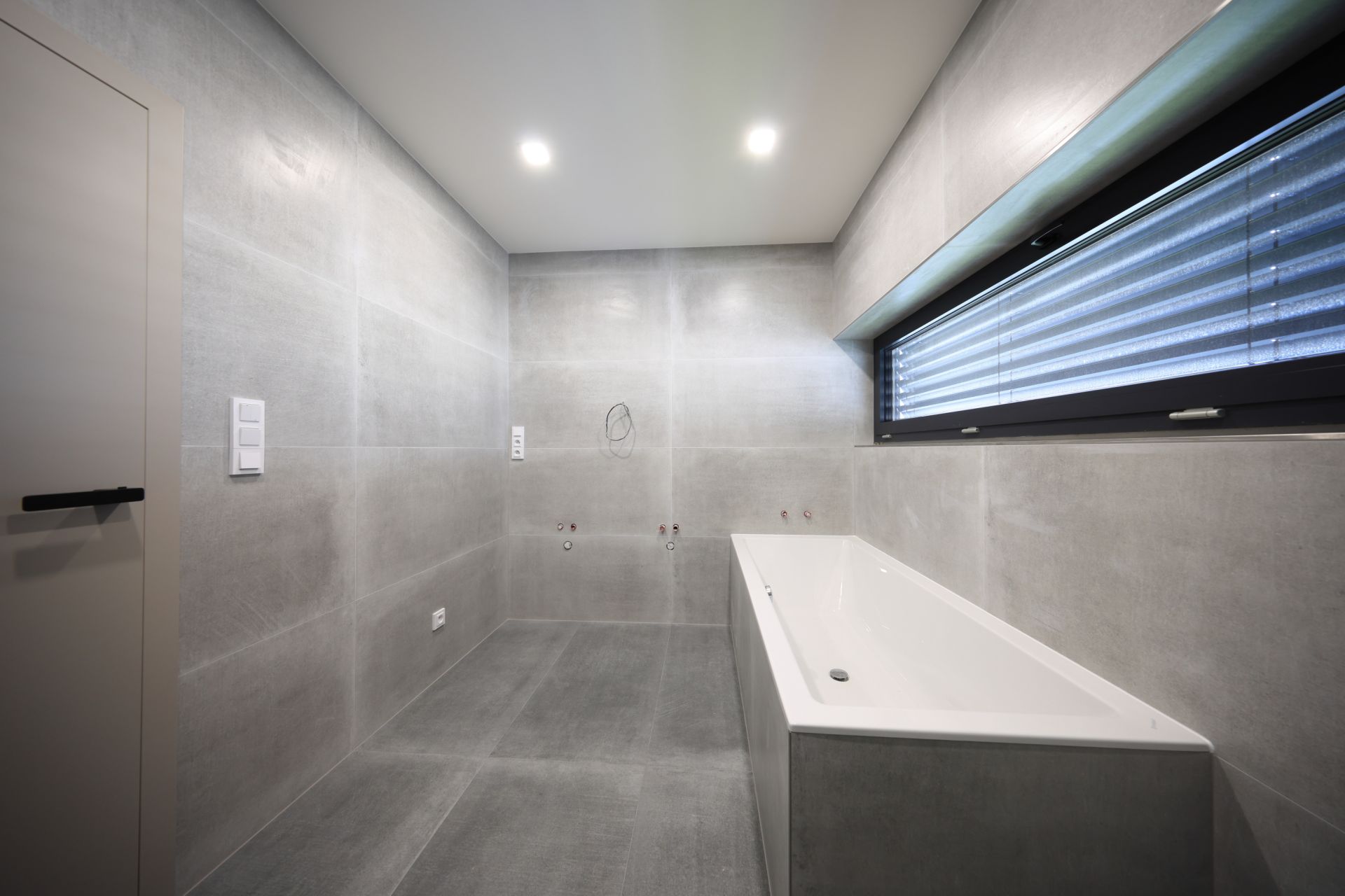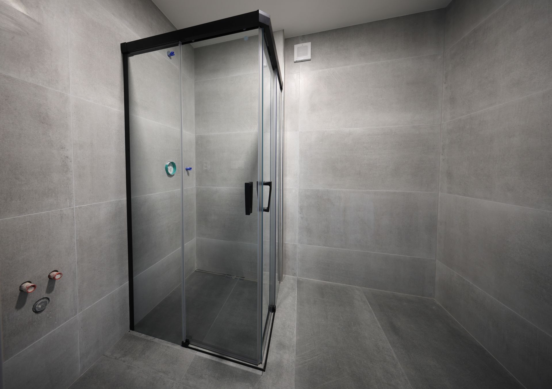 Large-format tiles Manhattan Tribeca from Studio Archtiles and high-quality vinyl flooring (Gerflor), adding a modern look and easy maintenance to the space.
