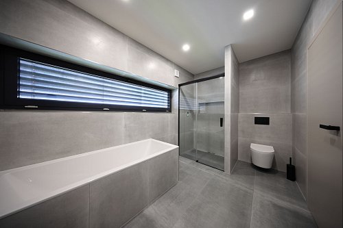 Aluminium windows with triple glazing and outdoor electric blinds Climax, offering excellent thermal insulation and privacy.